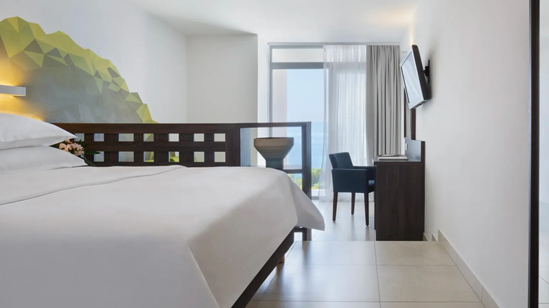 Anläggningen är terrasserad upp mot bergen omgiven av frodig grönska och med utsikt över havet. Här finns sällskapsytor för gemenskap, inbjudande serveringar och aktivitetsområden för den som vill hålla sig sysselsatt. Längs strandpromenaden finns ett stort utbud av restauranger, glassbarer och småbutiker värda ett besök.