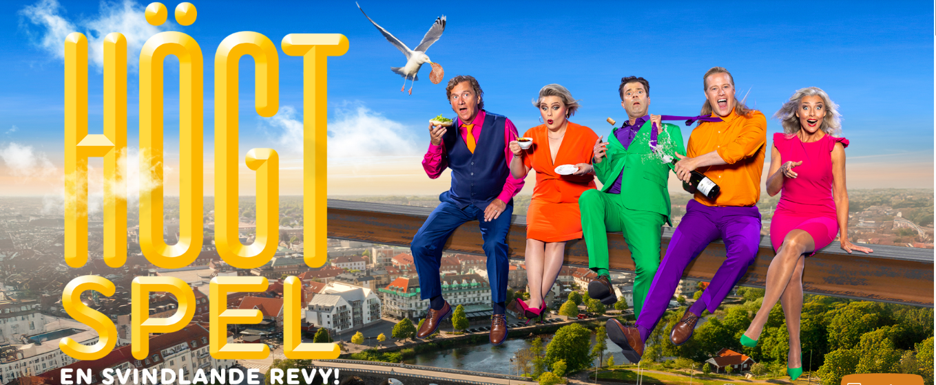 Falkenbergsrevyn driver med vår samtid och gör det med humor av både finess och klass i nya revyn Högt Spel – en svindlande revy. Nya revyn är starkt kopplad till att det är många som spelar högt världen över vilka mår bäst av att tas med en komisk klackspark. Världen blir inte roligare än vi gör den.