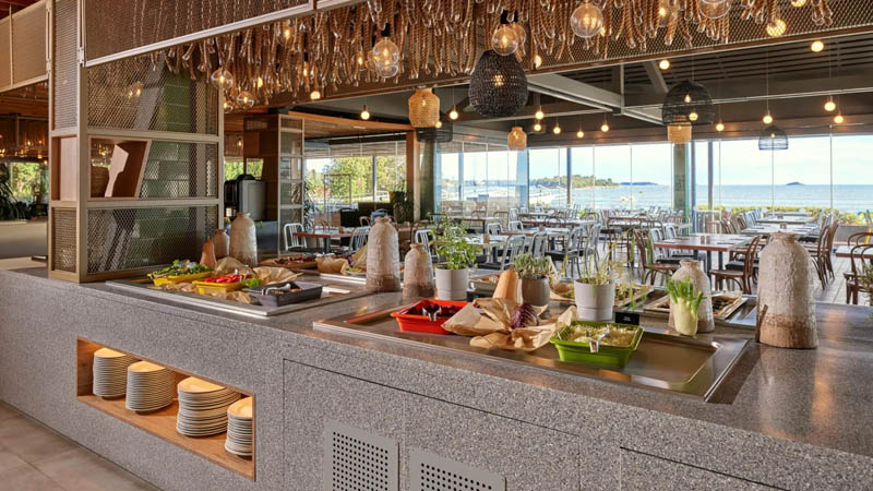 Utomhuspool, träningsmöjligheter och bra restaurang där vi äter middag på källarna. Här kan vi njuta av den eleganta utomhusterrassen och sola i behagliga solstolar. Vi har ca. 100-300 meter ner till havet. På området finner vi också en liten supermarket. När man vill ta sig in till centrum är det enkelt med shuttle bussen som går ungefär en gång i timmen eller med båt från hotellets strand.