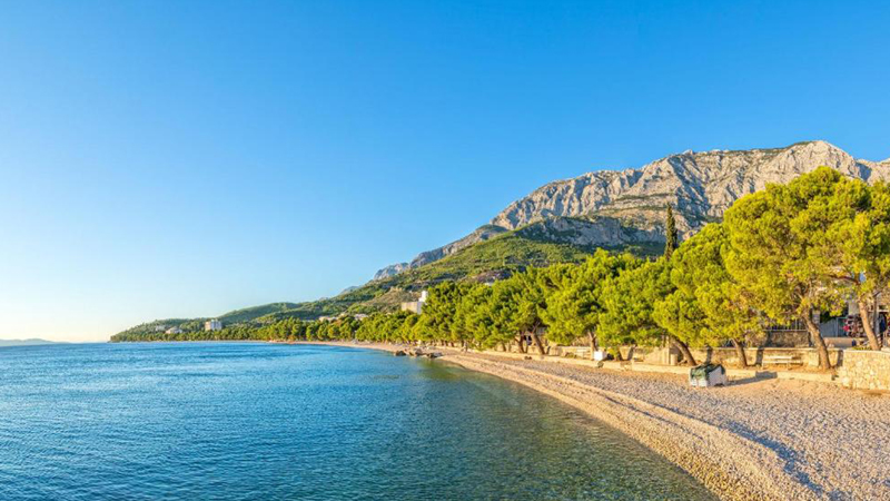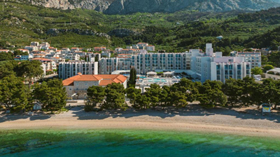 Hotellet ligger alldeles intill den längsta stranden på Makarska Rivieran där alla kan hitta sin plats under solen eller i skuggan av medelhavets tallar. Vid hotellets rymliga poolområde finns parasoller och solstolar som är gratis för alla hotellgäster. Här finns sällskapsytor för gemenskap, inbjudande serveringar och aktivitetsområden för den med spring i benen. Längs strandpromenaden finns ett stort utbud av restauranger, glassbarer och småbutiker värda ett besök.